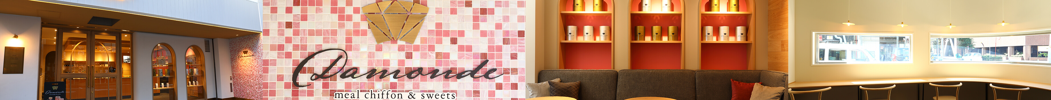 Damonde(ダモンデ)はカラダに優しいミールシフォンとスイーツが自慢のお店。ダイヤモンドの原石が、職人の手で磨き上げられて美しい宝石になるように、地元の食材、厳選した米粉で一つひとつ丁寧にお造りしています。